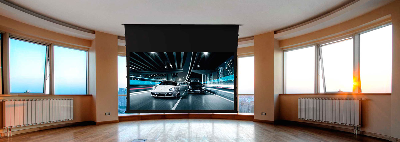 Este tipo de pantallas tensadas están diseñadas para uso en lugares en los que se pueden instalar de forma permanente y donde con frecuencia se requiere una muy alta calidad y profesional de visualización. Esta pantallas pantallas con sistema eléctrico de proyección frontal Tensionada de muy alta gama, ofrecen una superficie completamente tensada y lisa gracias a los cordones tensores dispuestos a ambos lados de la pantalla.